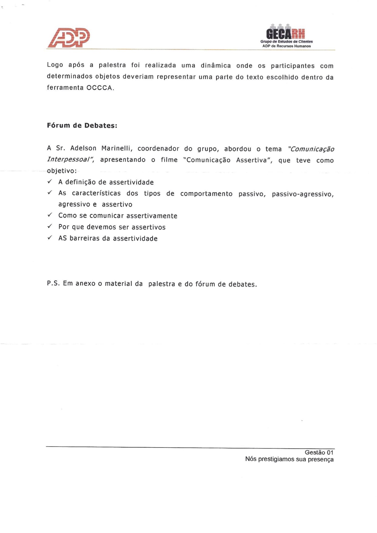 Palestra Vivencial